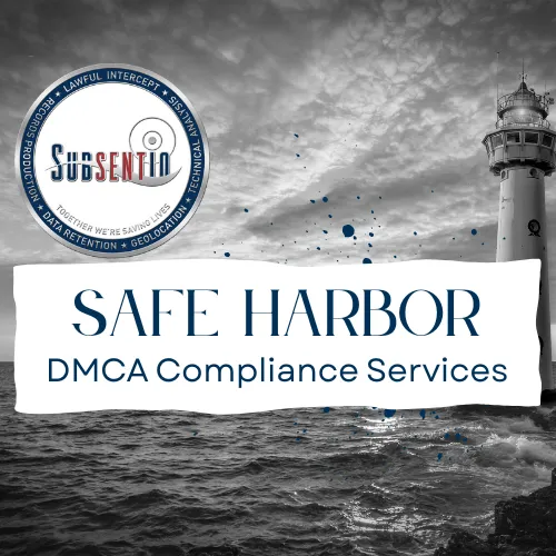 Subsentio works with you to establish and enforce a compliant DMCA policy that adheres to the "Safe Harbor" provisions in DMCA. Compliance is our core competency, and we apply our expertise to support all your compliance needs.